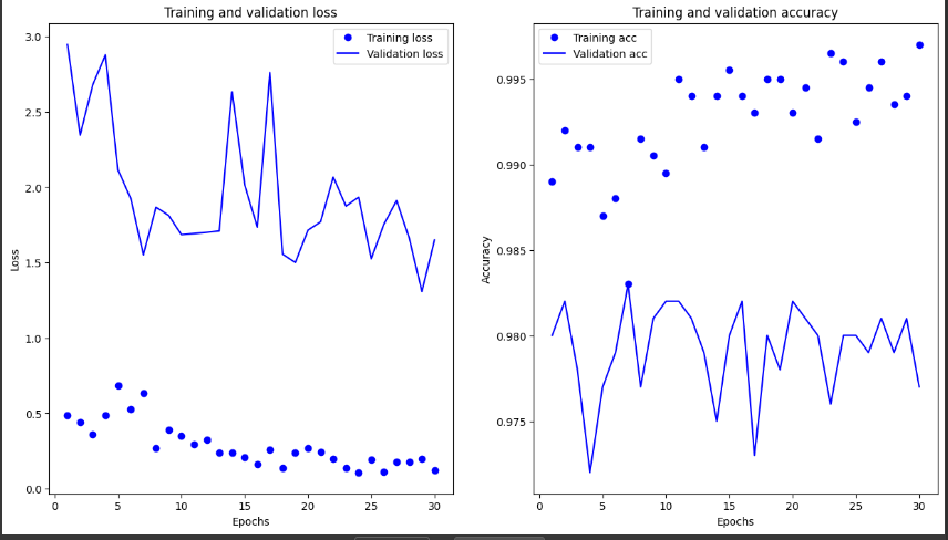 - 검증 정확도가 98%로 이전보다 모델의 성능이 향상됐고, 5에포크만에 과대적합이 일어나던 현상도 완화되었습니다.