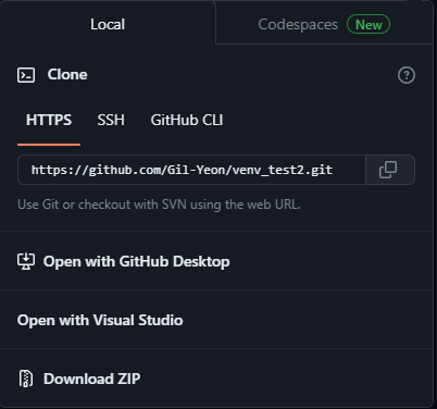 2. github에서 URL복사 후 생성을 원하는 곳에 git clone으로 프로젝트 폴더 생성합니다.