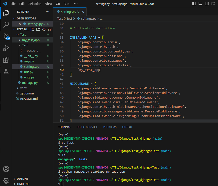 # 프로젝트 내부에 my_test_app이라는 app 생성