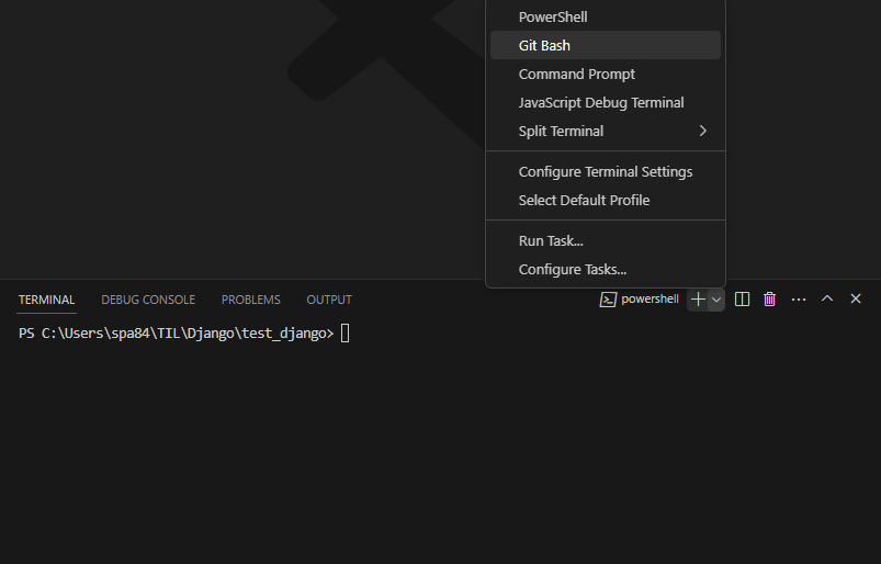 8. manage.py파일이 존재하는 프로젝트파일에서 $ python manage.py runserver를 입력한다.