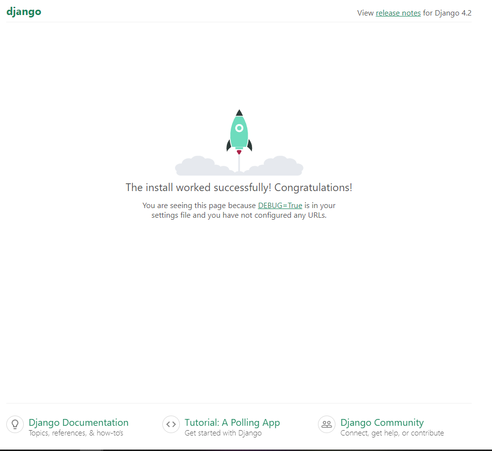 9. http://127.0.0.1:8000/를 클릭하면 아래의 사이트가 나온다.